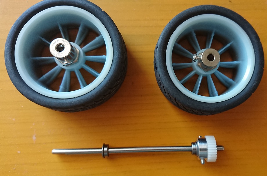 driving wheels, servomotor to control the front steering, screws, bearings,