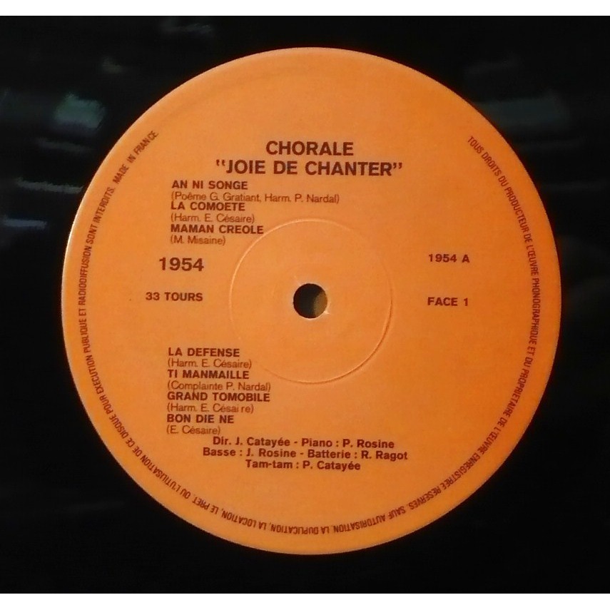 Le programme de chants créoles de ce disque constitue une sorte de petit "oratorio de la personnalité martiniquaise", par les différents rythmes de chants (complainte, mazurka, biguine), et surtout par les thèmes essentiels: évocation d la vie quotidienne présente et passée (An ni songé, la Comète), du passé colonial et de Saint-Pierre (la Défense), la mère et l'enfant (Manman créole - Ti manmaille) et aussi de Noël (Bon Dié né).